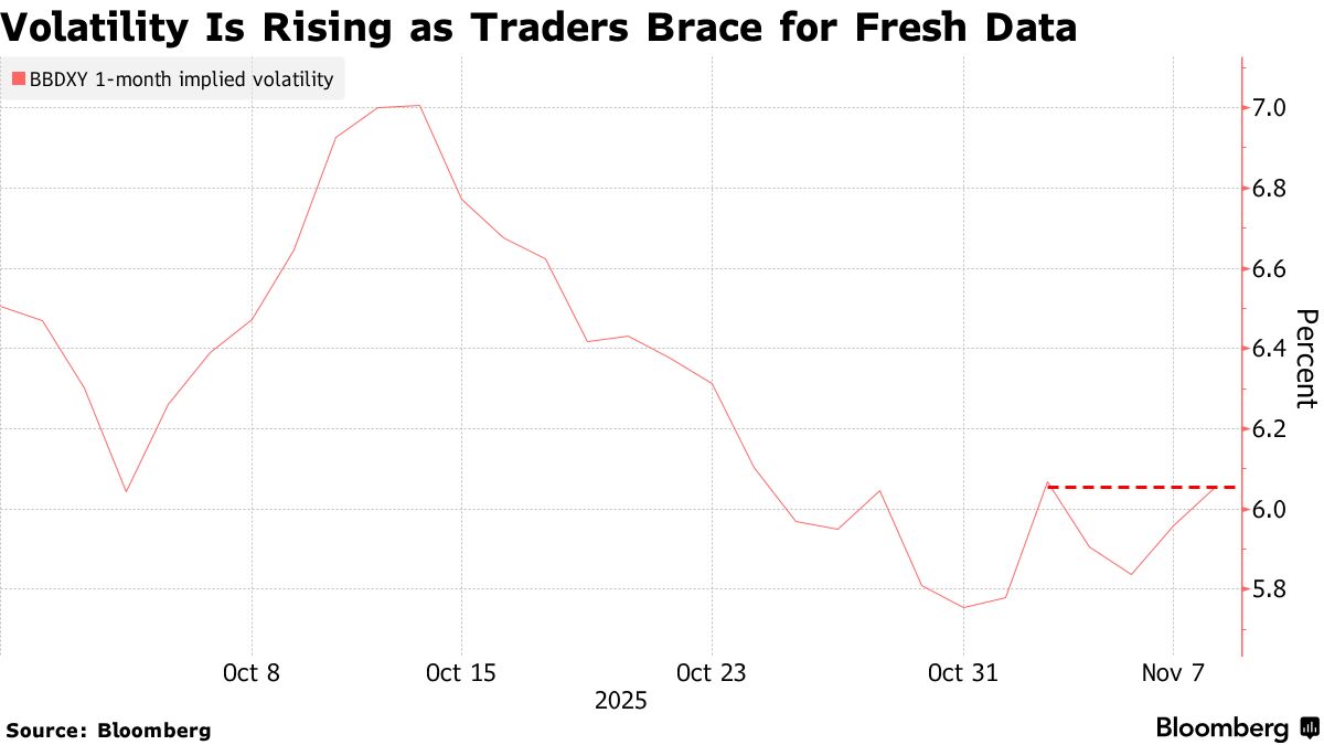 Spectra Markets总裁Brent Donnelly表示:“我认为外汇波动性将回升并略有上升。这取决于数据表现,但鉴于美联储官员近期言论,市场很容易将12月降息预期定价排除。”