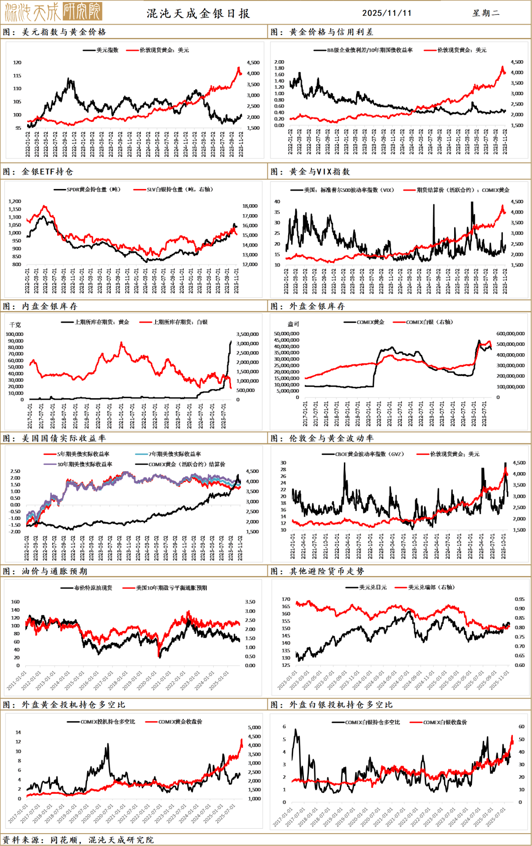 周一开盘,参议院推进两党协议,特朗普表态政府即将开门,市场预期开门概率回升明显。一旦政府停止停摆,经济数据开始逐步公布,这对此前大幅回调的12降息预期出现反弹,因为预期通胀数据和经济就业数据都将出现一定走弱。市场预期政府开门后,财政部TGA账户可以释放出2000亿美元资金,美元流动性(SOFR-OIS)利差已经回归至中性水平。因此在政府开门和降息预期回温的影响下,贵金属同步美股上行,美元指数和美债利率对其抑制也逐步放缓。