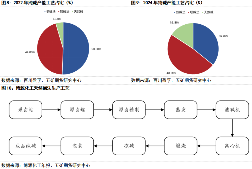 随着博源化工、中盐化工等企业持续投入资源进行开发,国内天然碱在纯碱供应结构中的占比预计将迎来显著提升。据博源化工年度报告披露,其旗下的阿拉善塔木素天然碱矿资源储量经勘测保有的固体天然碱矿石量达105,225.21万吨,对应矿物量约为69,224.59万吨。