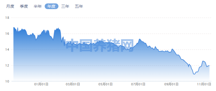据中国养猪网数据,生猪价格从今年1月份的8.3元/斤左右一路下降至10月中旬5.44元/斤,截至11月11日,猪价虽有所反弹,但仍未突破6元/斤。猪价“5元时代”不仅成为业内热议,更让整个养殖端陷入新一轮亏损漩涡。