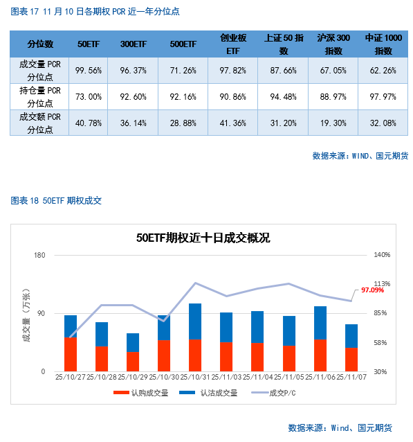 市场回顾:上周美国政府停摆刷新纪录、海外波动放大背景下,A股展现韧性:主要股指震荡上行,上证指数约涨1.1%,上证50小幅跑赢,权重蓝筹托底明显。期指升贴水平稳、期权PCR维持中高水平,未见恐慌情绪。10月CPI同比+0.2%、核心CPI+1.2%,PPI降幅收窄,均好于预期,“反内卷”、“稳价”政策效果开始体现。