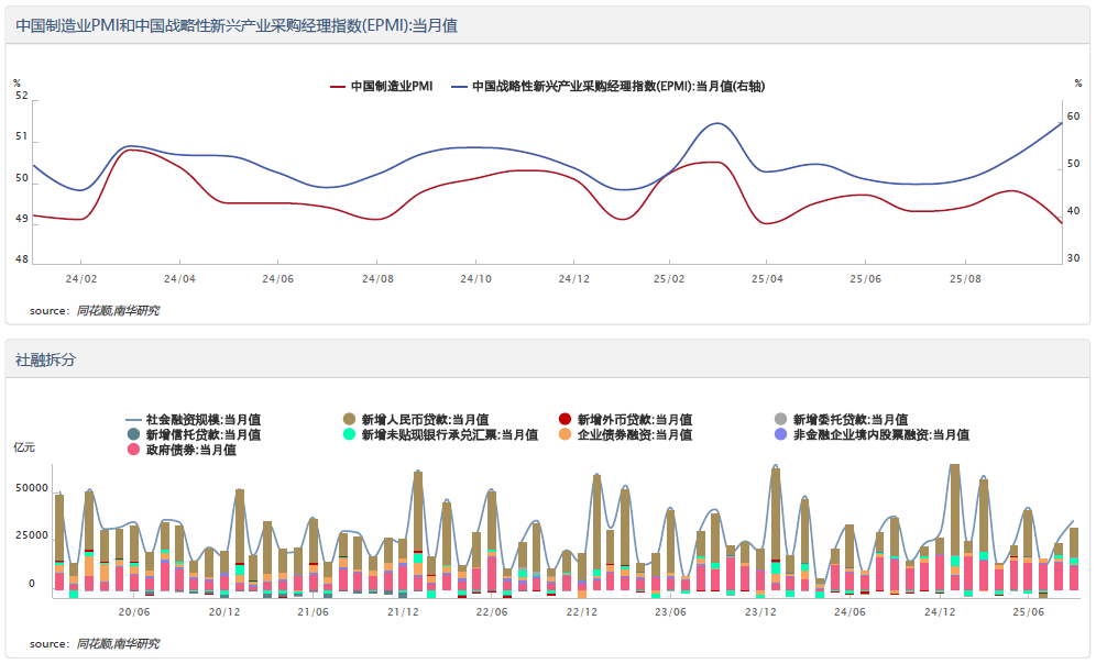 我们认为,专栏1中对于总量金融数据的强调自有其合理性,并不完全是因为三季度信贷转负而做出的“马后炮”似发言——根源在于当前经济增长引擎已经发生了切换。当下快速推进的先进制造、AI行业,乃至前几年的5G、光伏、新能源汽车等行业更多是在国家资金的支持下发展起来的,这些行业更多得到来自中央、地方财政的支持,以政府一般债或者专项债务融资的模式。因此如果死盯信贷数据,难免会错过本轮科技的快速进步,从而对基本面抱有更加悲观的预期,这也是当下市场对于经济修复预期最大的分歧所在,因为如果从信贷融资、传统行业表现来看,确实会得出一个更悲观的结论,例如制造业PMI和EPMI数据在年内也有两次较大的劈叉现象。