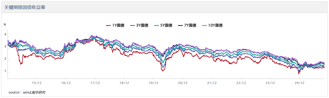 三是关于政策利率和市场利率。从2024年6月陆家嘴论坛开始,人民银行采取了一系列改革手段来增强政策利率的重要性和利率传导机制的通畅程度,具体包括确定7天期逆回购为唯一政策利率;取消MLF政策利率的地位;以及后续调整MLF和买断式逆回购中标机制,改为多重价位中标等。当前“政策利率——短端货币市场利率——债券市场基准利率——存贷款市场利率”的传导机制已经基本成型。今年以来7天期质押式回购利率基本围绕政策利率水平波动,市场利率与政策利率的利差更加稳定意味着后续观测过程中,利差水平对其锚定中枢的跟随意愿会更强——在经过大半年的震荡之后,利率市场可能正在重新找回属于它的“锚”。