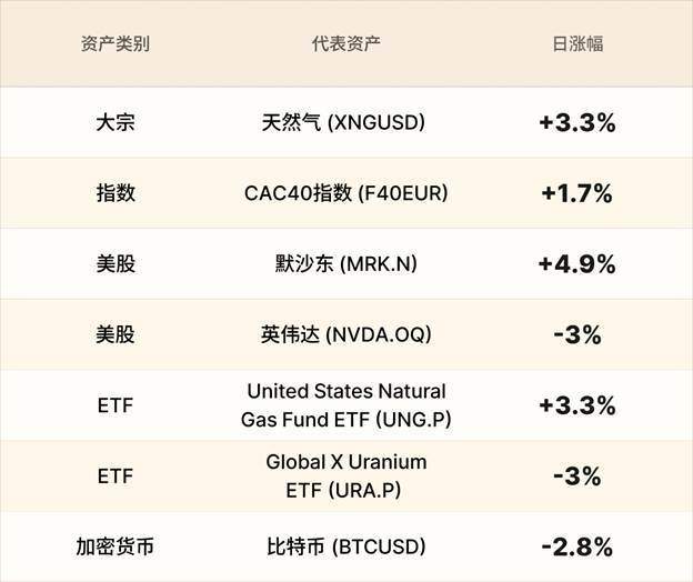 截至11月11日收盘,在EBC产品中,默沙东股价领涨,原因是公司第三季度盈利亮眼,超越华尔街预期,且上调了2025财年指引。