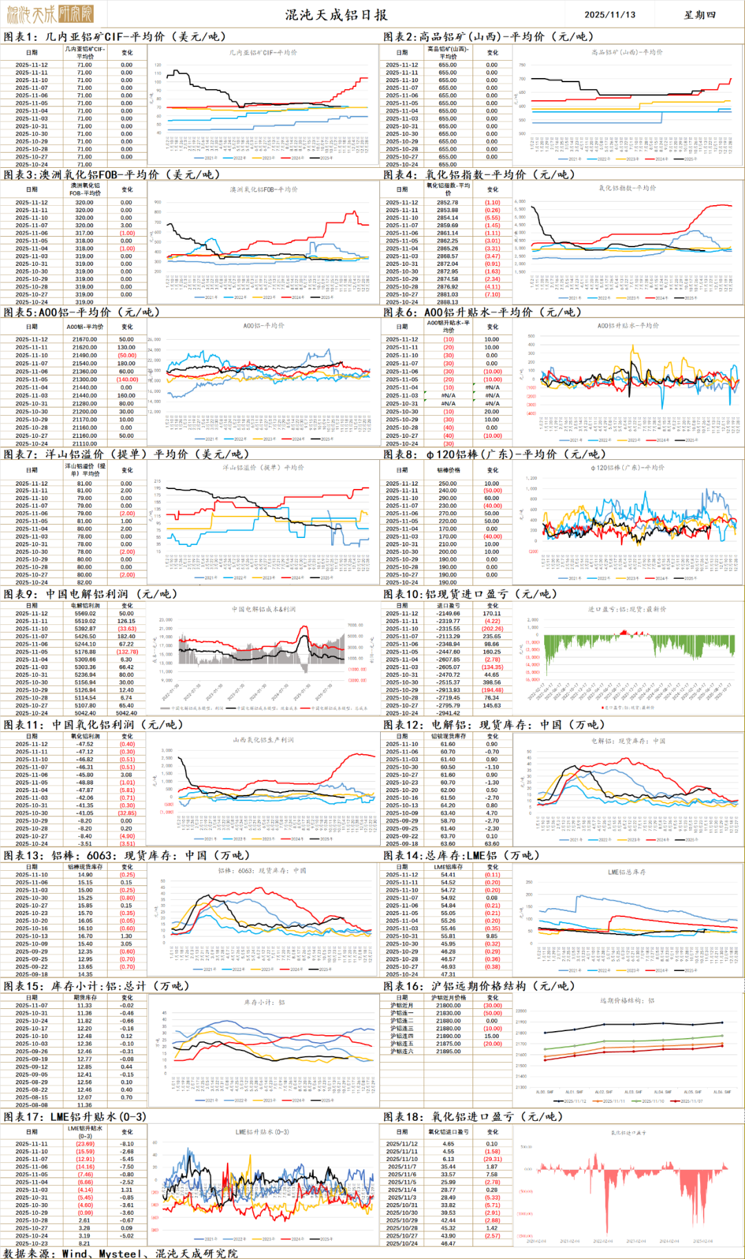 1.【几内亚加速推进本土铝土矿加工,重点发展氧化铝精炼】外电11月11日消息,几内亚矿业部长表示,该国将大力推动本土矿产加工能力建设,重点发展氧化铝精炼和铁矿石造球产业,以结束数十年来单纯出口原矿的历史,实现经济转型。在铝土矿方面,几内亚作为全球最大铝土矿生产国,长期以来却缺乏现代化的氧化铝精炼厂。为此,政府设定了到2030年建成5至6座氧化铝精炼厂、年加工能力达到约700万吨的目标。目前,几内亚已与中国国家电力投资集团公司(SPIC)签署了首个氧化铝精炼厂协议,预计于2027年底完工。此外,与中铝公司、法国Alteo等企业的谈判也已进入深入阶段。为表决心,几内亚政府甚至因未履行建设精炼厂的承诺,撤销了阿联酋环球铝业公司的一个铝土矿特许权。尽管有分析指出,此举可能只是将中国的进口依赖从铝土矿转向氧化铝,但几内亚高品质、低硅铝土矿的战略地位(支撑全球25%铝产量)为其工业化提供了坚实基础。(上海金属网编译)