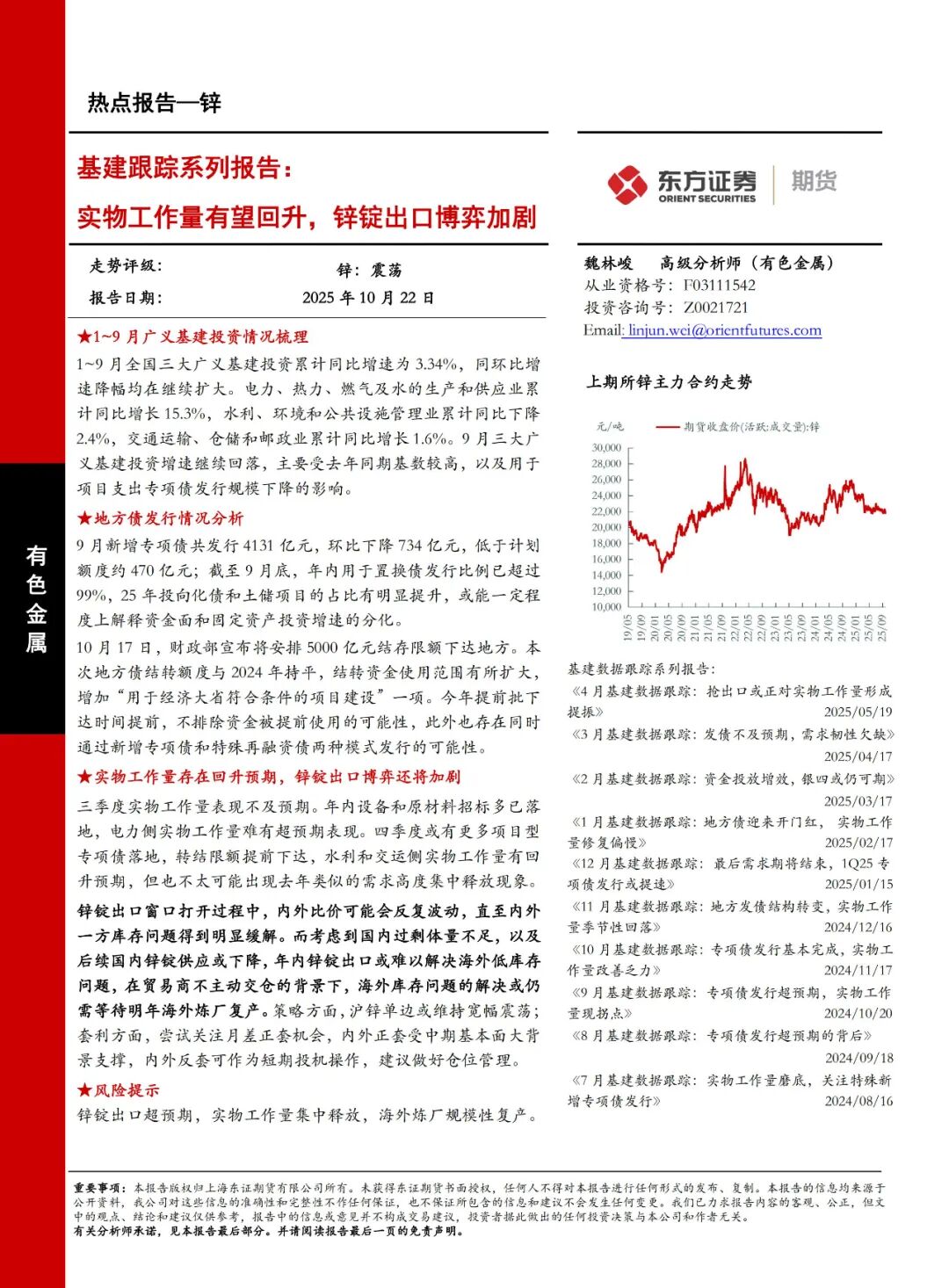 基建跟踪系列报告:实物工作量有望回升,锌锭出口博弈加剧