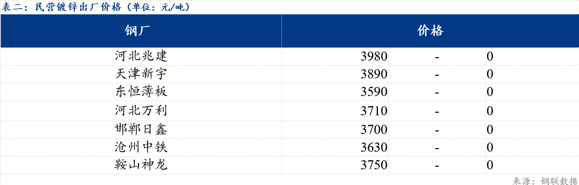 今日北方民营钢厂镀锌出厂指导价在元/吨。