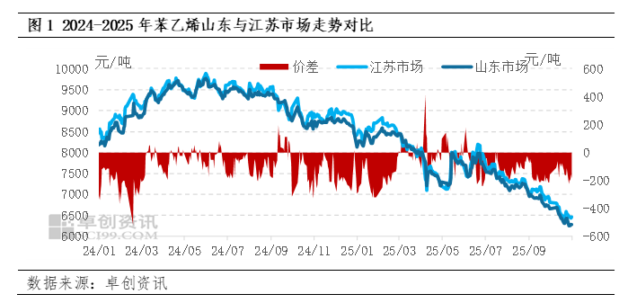 【导语】10月中国苯乙烯市场供需双弱,价格震荡下行。上中旬因山东装置停车预期支撑,其价格相对华东抗跌,套利窗口关闭;下旬随着山东供应压力实际显现且库存承压,价格跌幅放大并重新打开流向华东的套利窗口。展望11月,预计山东市场因供应收紧且需求有支撑,短期表现将强于华东,两地套利窗口维持关闭;但至月下旬,随着装置投产及重启,山东供应压力再现,套利窗口有望再度开启。