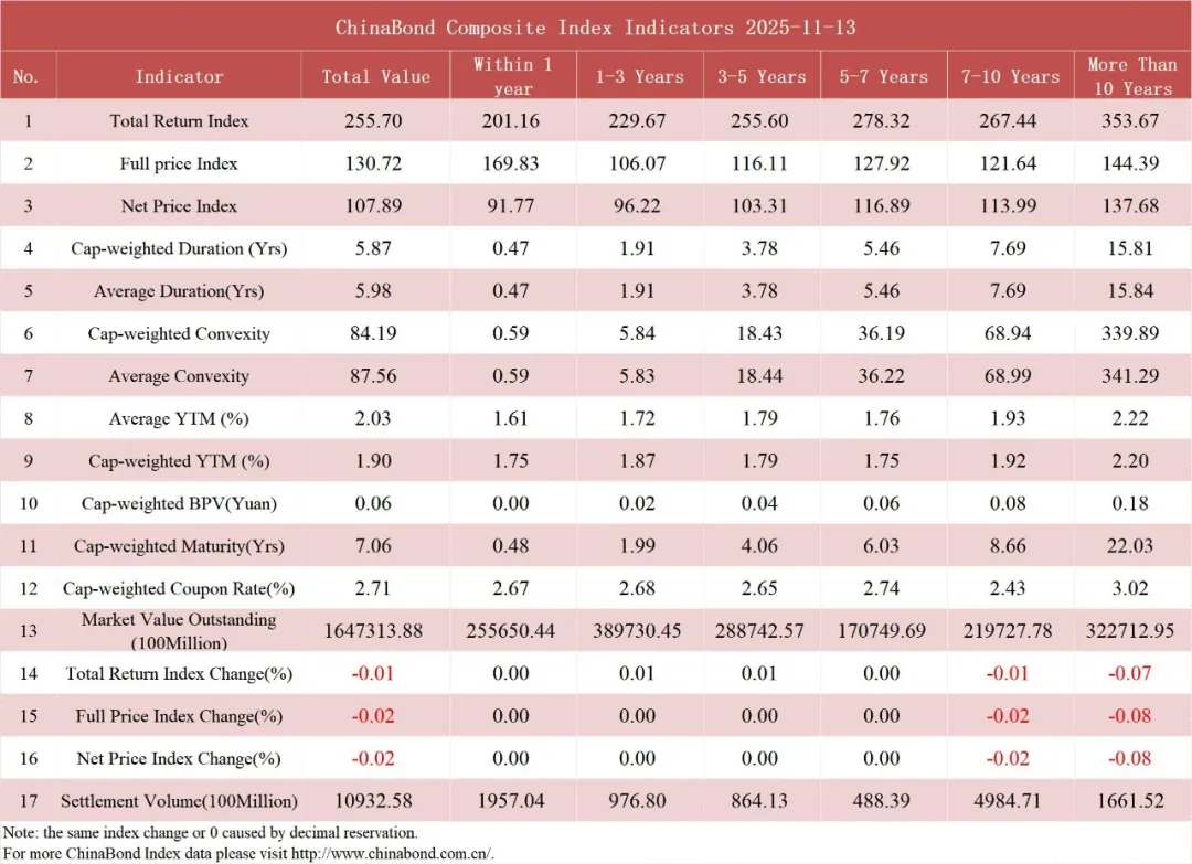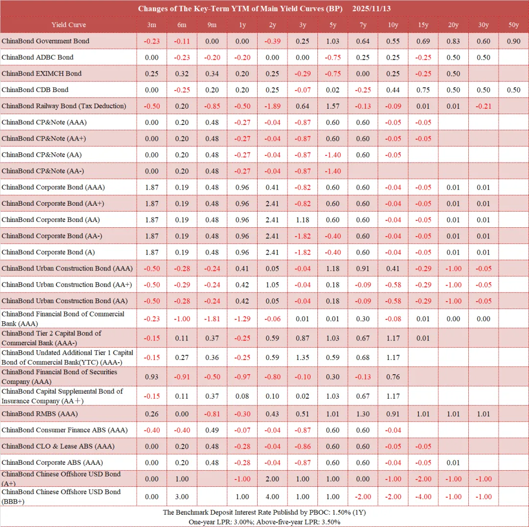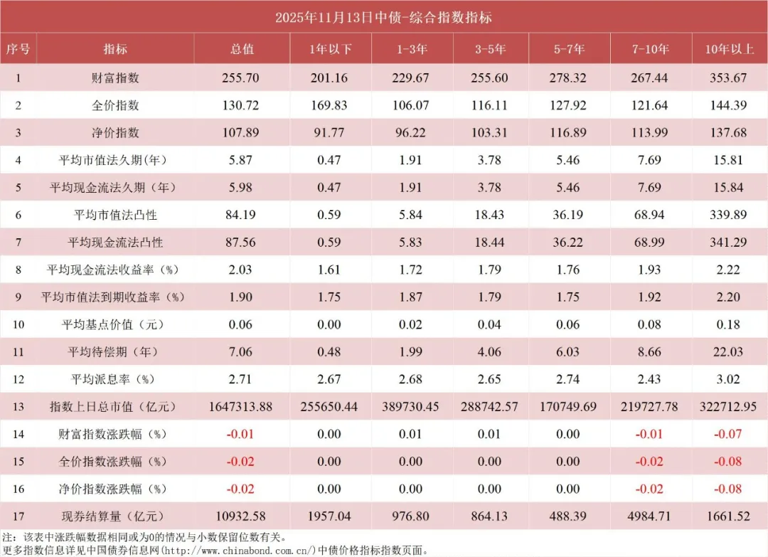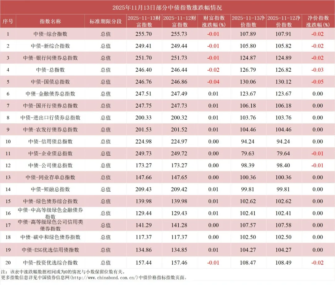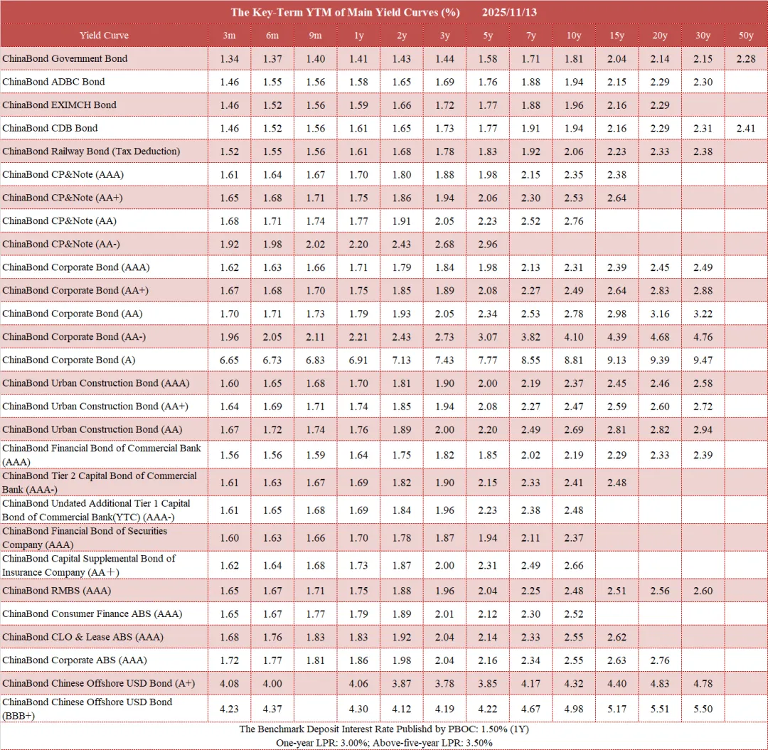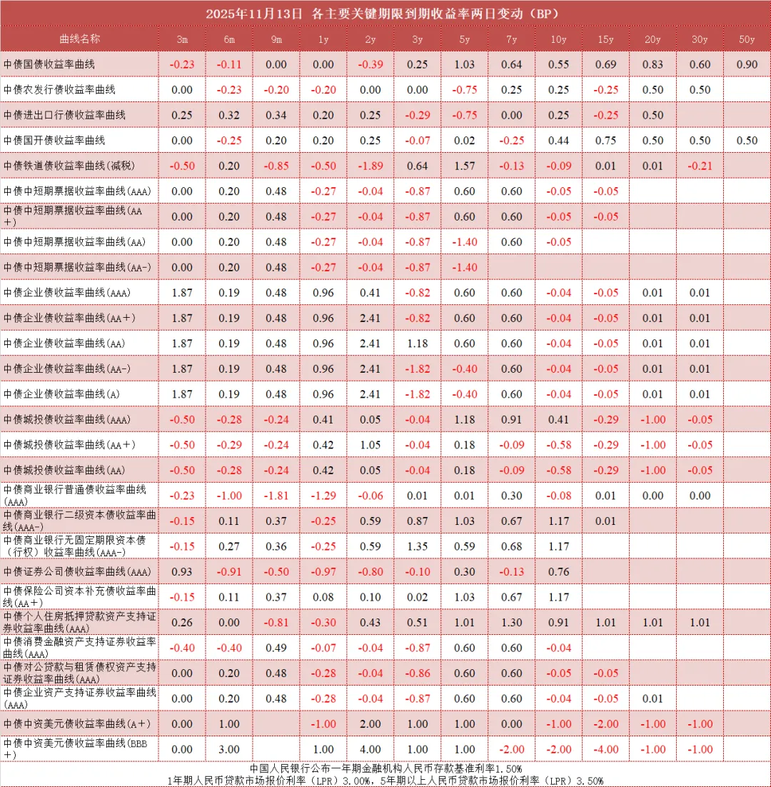 债市值言:中债收益率曲线和指数日评2025年11月13日