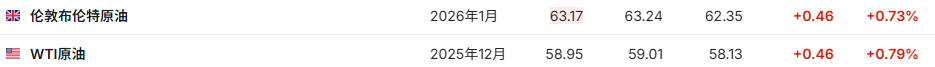 3.截至发稿,WTI原油涨0.79%,报58.95美元/桶。布伦特原油涨0.73%,报63.17美元/桶。