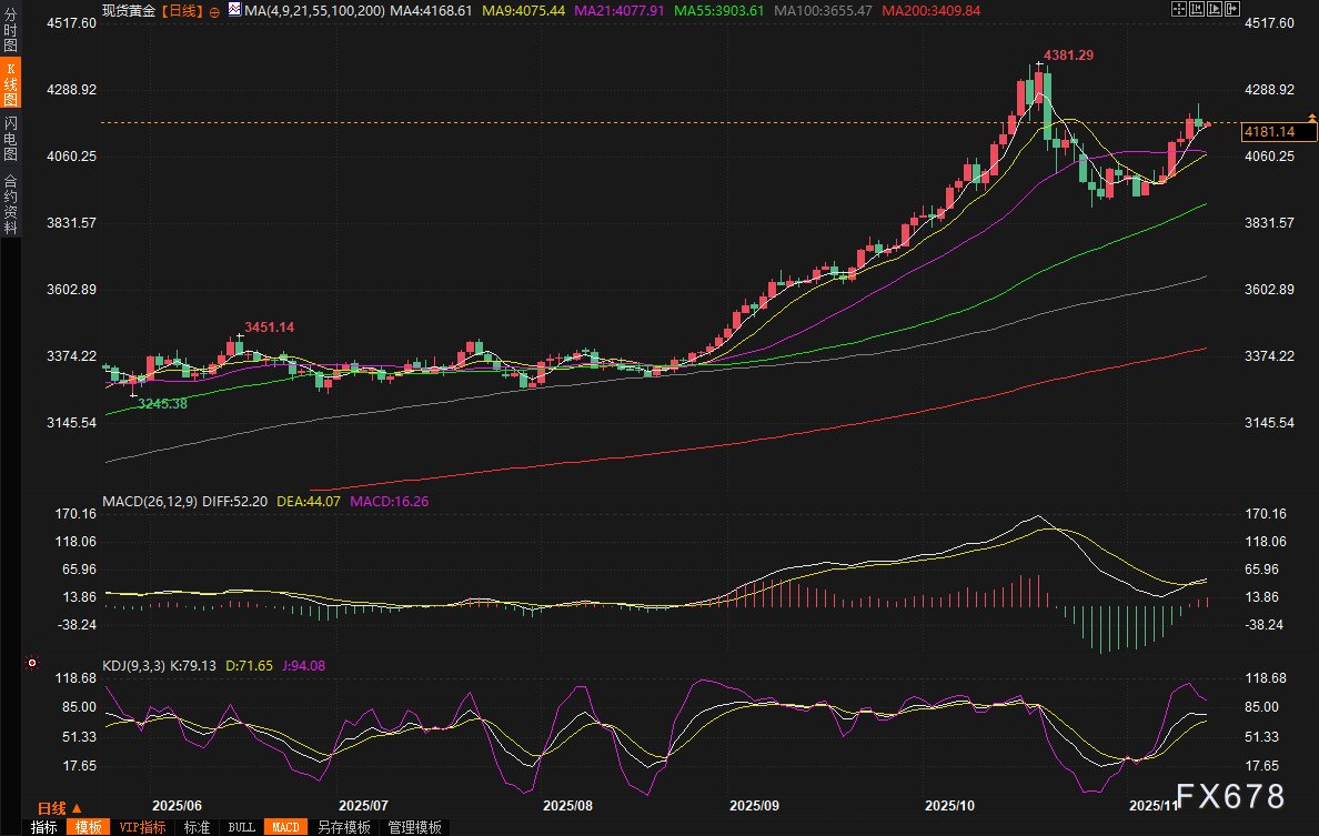 周五(11月14日)亚市早盘,现货黄金窄幅震荡,目前交投于4180.13美元/盎司附近。