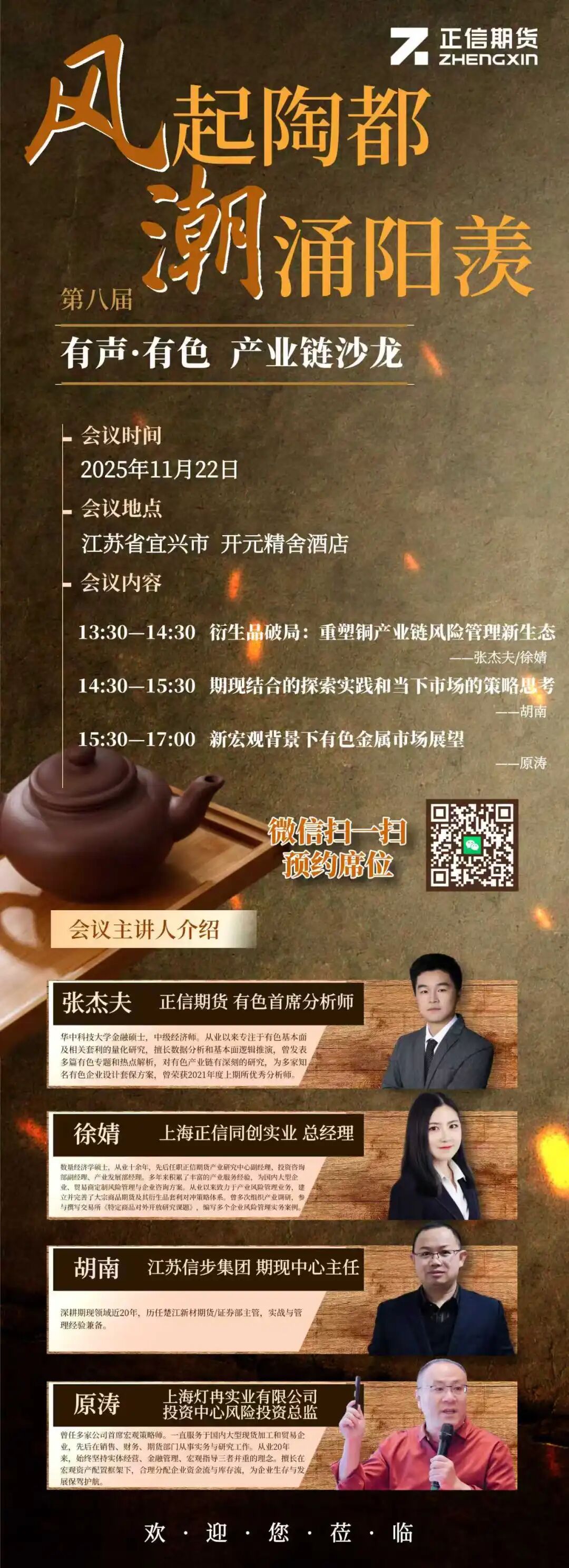 泛泛之谈终难触及核心,回归价值本质才是王道。本届活动采用闭门论坛形式,定向邀请数十位产业链核心企业与机构专家齐聚一堂。在这里,没有浮于表面的喧嚣,只有聚焦行业痛点的深度探讨;没有虚与委蛇的客套,只有坦诚相见的智慧碰撞。我们将共同叩问有色金属市场的未来,在深度交流中探寻发展的新路径。