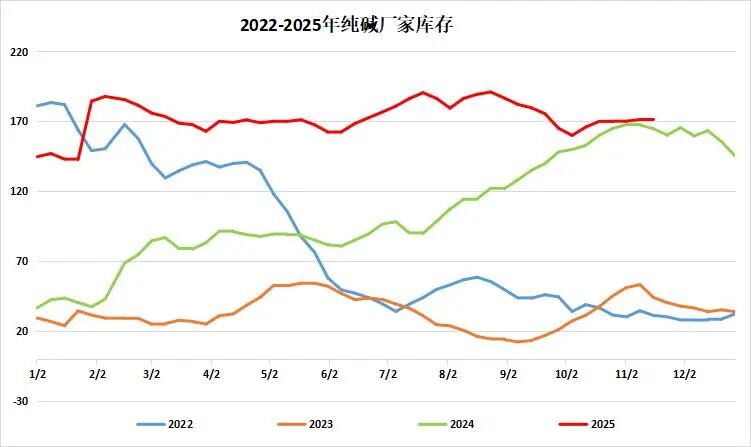 本周纯碱供应高位,企业产销维持平衡。下游需求稳定,整体按需为主,周内厂家库存变化不大,目前库存暂居同期偏高水平。