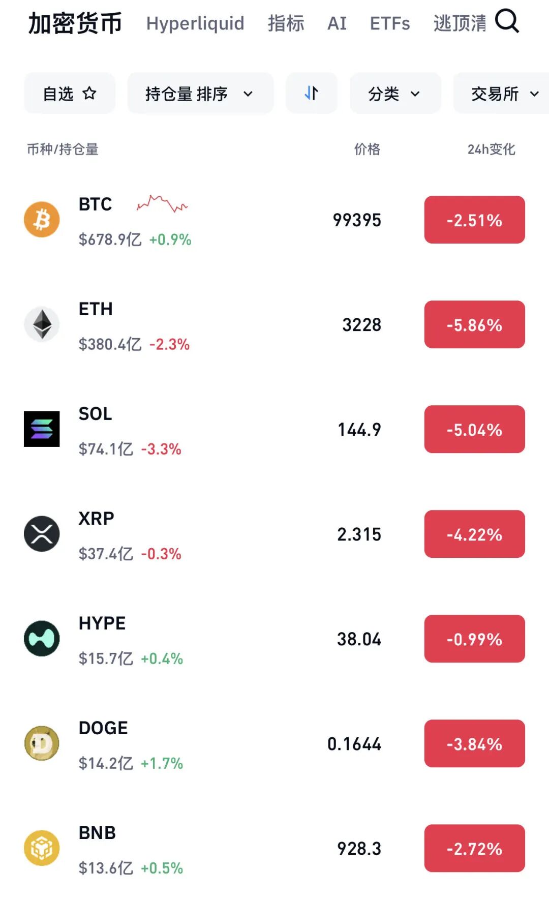 11月14日,加密货币市场普跌,截至发稿,比特币跌2.51%,以太坊跌5.86%,瑞波币跌4.22%,狗狗币跌3.84%。