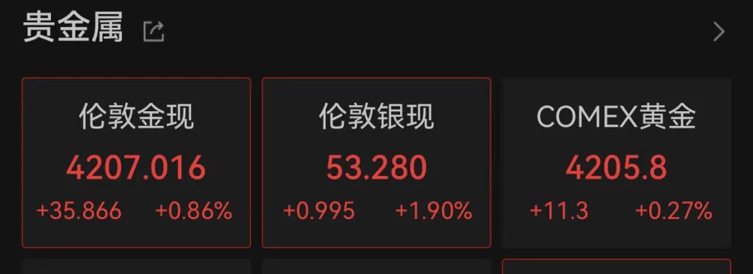 国际金价亦上涨,伦敦金现再次站上4200美元上方。