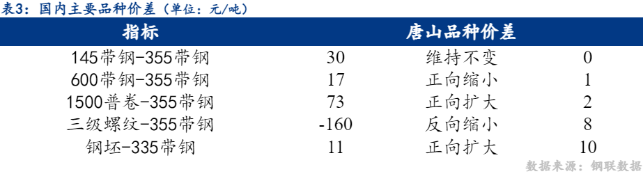 355mm带钢与钢坯市场价格价差正向扩大10元/吨,螺带差反向缩小8元/吨。