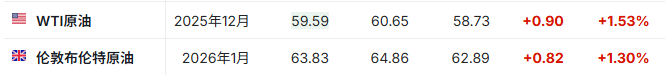 3.截至发稿,WTI原油涨1.53%,报59.59美元/桶。布伦特原油涨1.30%,报63.83美元/桶。