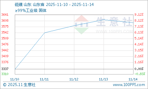 近期硫磺价格上涨。主因主产国供应锐减,国内港口库存走低且补货乏力,贸易商囤货抬价;同时储能领域需求爆发,叠加磷肥冬储刚需,多因素共同推动价格大涨。短期硫磺价格走势高位运行。