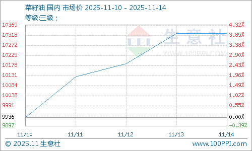 近期菜籽油行情上行。因中加贸易不确定致加菜籽进口受限,国内油厂断籽停机、库存见底,澳俄货源缓解滞后;气温降低使棕榈油需求转至菜籽油,共同推高价格。预计后市菜籽油行情偏强震荡。