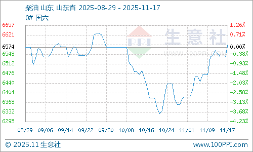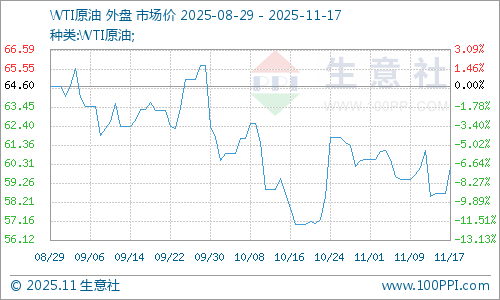 原油市场价格行情走势上涨,截止14日,美国WTI原油期货12月合约结算价报60.09美元/桶,布伦特原油期货1月合约结算价报64.39美元/桶。原油市场受多空因素共同影响,一方面欧佩克+产油国新一轮增产,市场依然担忧长线的供应过剩风险,原油市场行情受到抑制;但是地缘政治因素致死俄罗斯供应减少,加之美国关税问题得以缓解,该消息利好国际原油市场,原油行情走势上涨。原油行情直接影响国内成品油市场,国内汽柴油价格行情小幅走高。