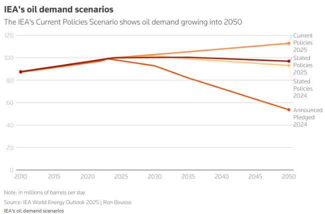 届时,该组织或许能够宣称其向争夺市场份额的战略转变取得了成功,尤其是鉴于IEA和高盛等预测机构表示,石油需求见顶的时间可能会比此前预期的持续更晚。