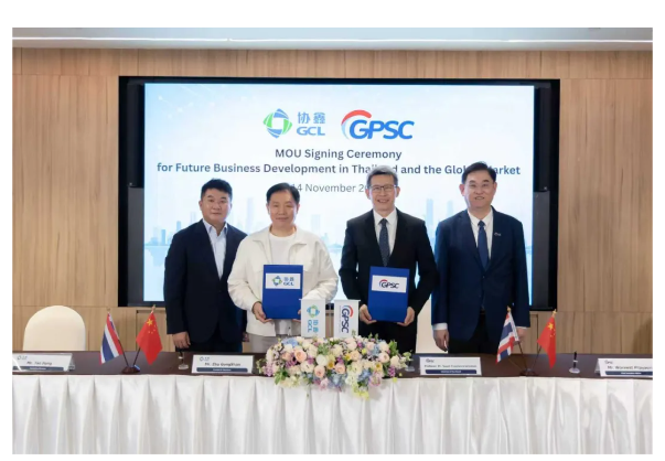 11月17日,据协鑫集团官微消息,当地时间11月14日,协鑫集团董事长朱共山率团赴泰国曼谷,与泰国石油新能源集团(GPSC)举行高层会晤并签署合作协议。此举标志着协鑫在深化全球化布局、拓展东南亚能源合作方面迈出关键一步,也为中泰两国在绿色低碳领域的协同发展注入新动力。
