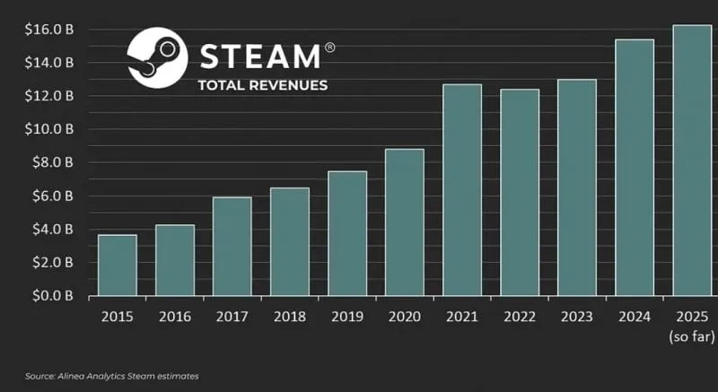 Steam年收入破纪录!数据显示2025年未过完已狂揽162亿美元