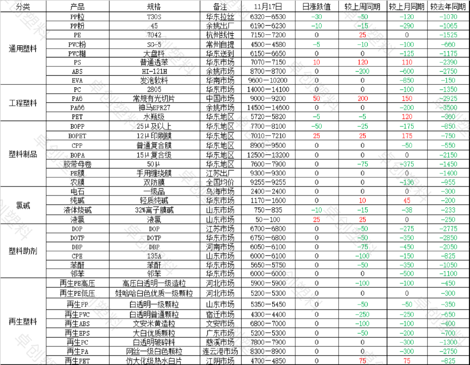 备注:以上表中所取价格为各产品代表市场或是代表区域价格,价格为截止到16:30的收盘价格,更多市场价格及详情内容请关注卓创资讯各产品网站或手机客户端。