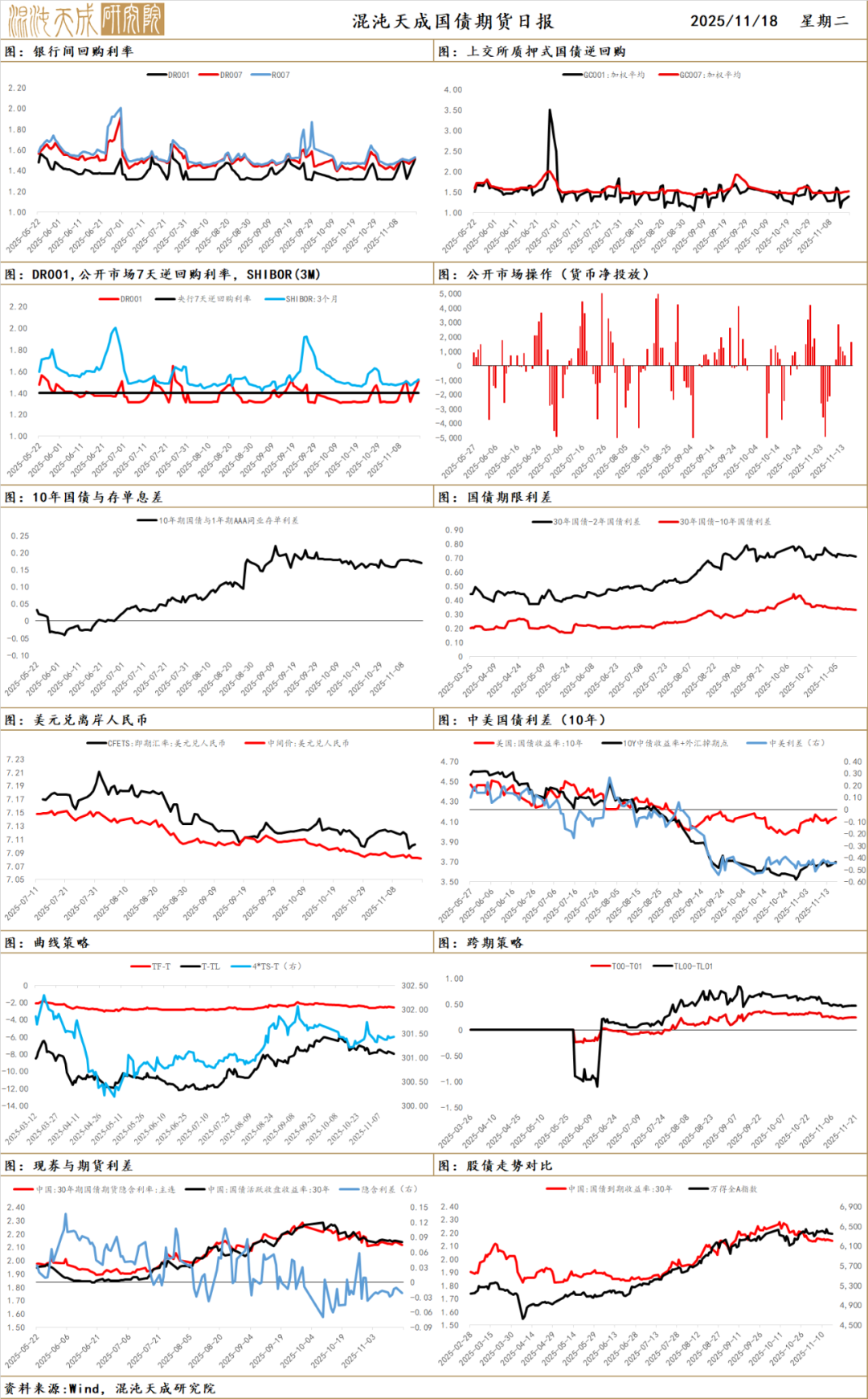 国债期货全线上涨,人民币汇率大幅升值,股市缩量回调。30年国债期货(TL)主力合约收报116.45元,人民币兑美元汇率报7.1048。3点后,现券收益率窄幅波动,短端受资金面收敛压制,长端在关键点位反复试探。