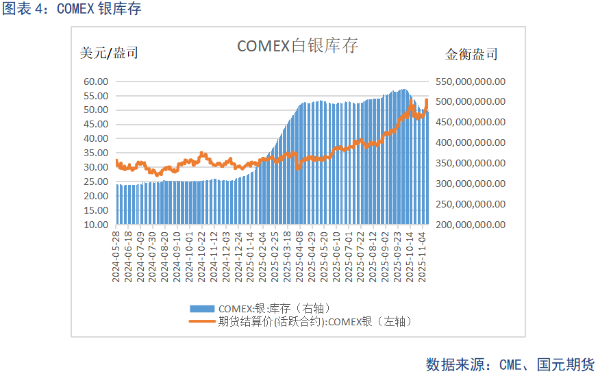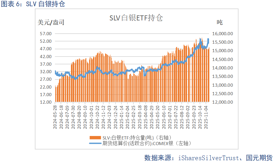截至11月14日,SPDR持仓量为1044.00吨,与前一周相比增加了1.94吨,基金持仓有所减少。截至11月14日,SLV持仓量为15218.42吨,与前一周相比增加了129.79吨,基金持仓有所减少。