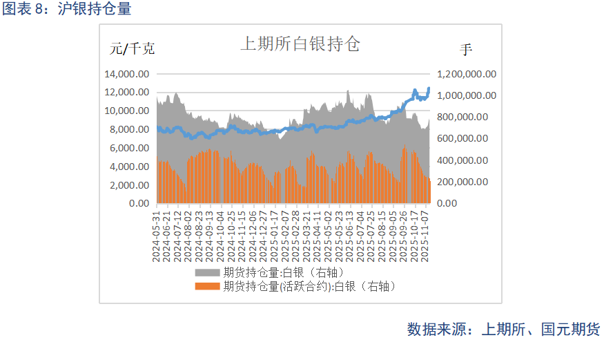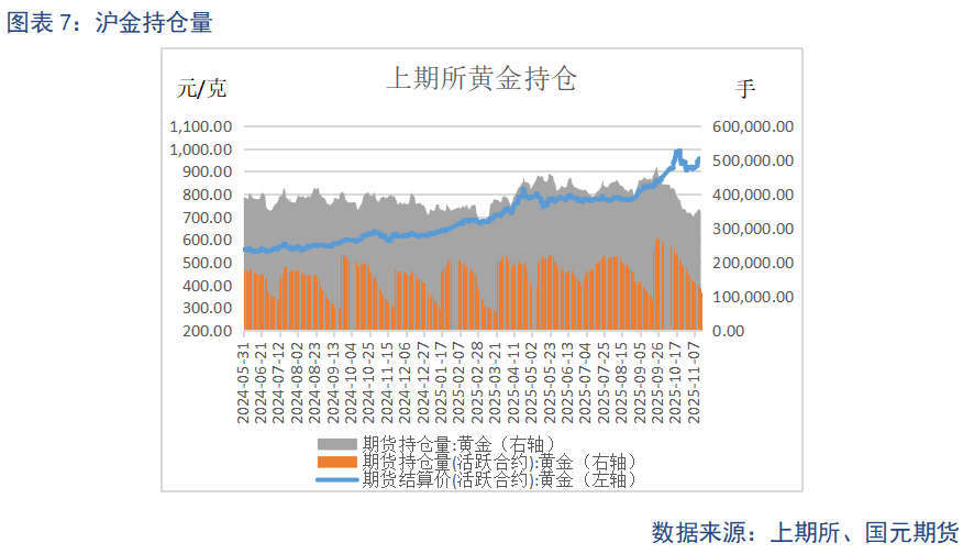 截至11月14日当周,沪金主力期货持仓量为113597手,较上周减少23063手;沪银主力期货持仓量为210326手,较上周减少35191手。