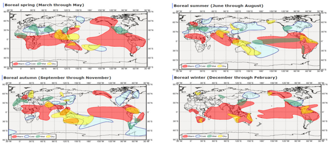 图3:厄尔尼诺在不同时间对全球气候的经典影响