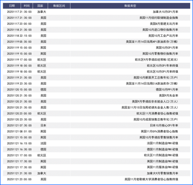 经济基本面的双重压力让美联储政策陷入两难,也左右着美元走势。短期来看,通胀粘性带来的鹰派政策预期仍在支撑美元,11月17日美元指数微涨0.08%至99.35附近。但中期而言,美元走势将取决于通胀韧性与经济放缓的力量博弈,政府停摆期间的信息空白亟待填补。未来一个月陆续发布的就业、零售额等延期报告,将为判断美国经济走向、美联储政策动向及美元后续走势提供关键依据,市场需密切关注数据变化带来的预期调整。