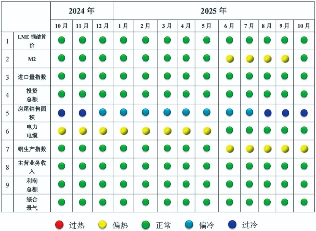 综上所述,尽管景气指数较上月保持上升趋势,主要指标仍处于“正常”区间运行。当前,铜产业呈现出生产稳健、投资活跃、需求分化的特点。展望未来,在宏观经济政策持续发力、产业转型升级深入推进的背景下,中国铜产业有望继续保持平稳发展的态势。在国民经济延续稳定发展态势的前提下,中国铜产业景气指数仍将位于“正常”区间运行。