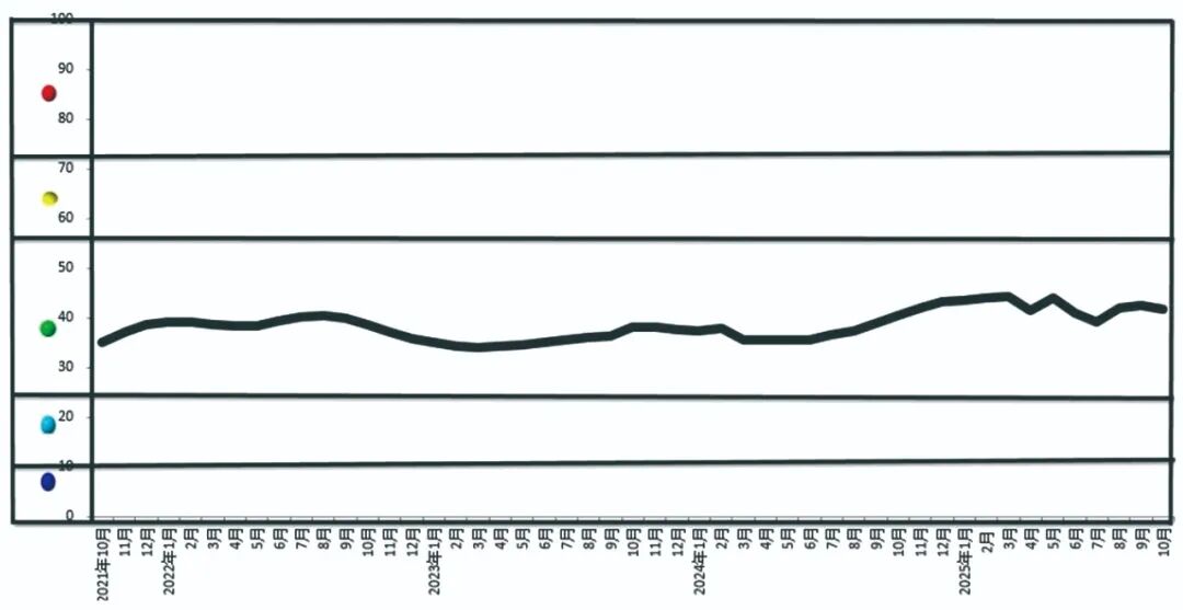 10月份,商品房销售面积指数为-105.9,较上月下降7.4个百分点。这表明国内房地产市场仍处于深度调整,高库存与购房者信心不足叠加收入预期偏弱,政策托底效果尚未完全显现,市场销售延续疲软态势。