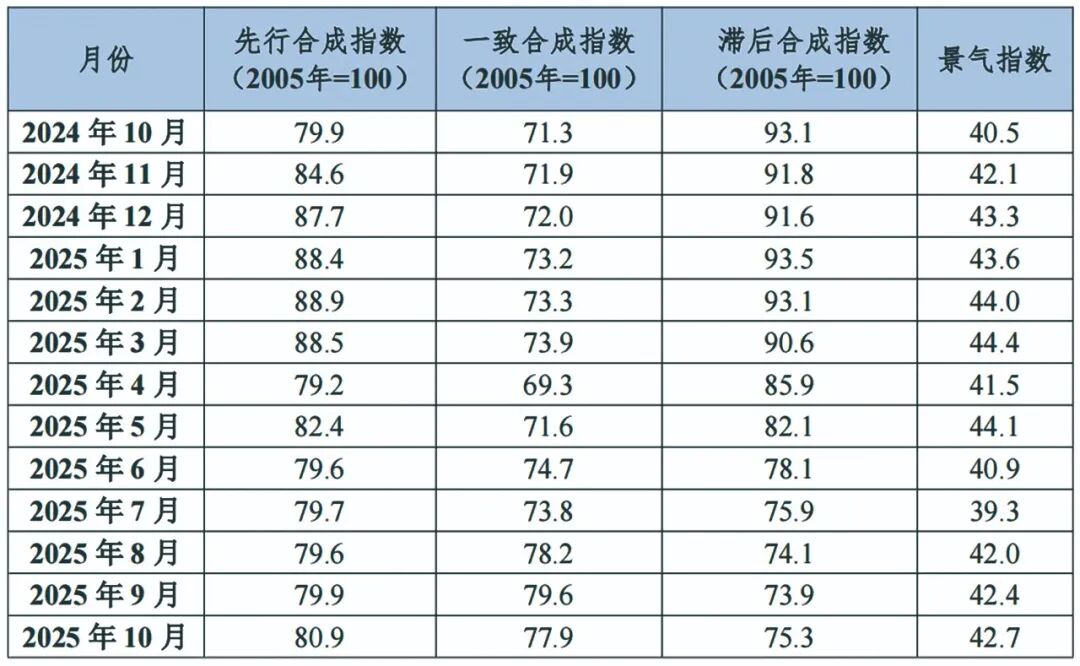 综合景气指数由9项指标构成,即先行指数和一致指数的构成指标。