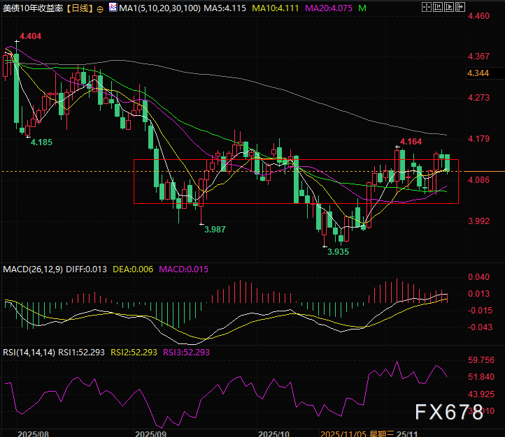北京时间16:16,美国10年期国债收益率现报4.108%。