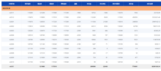 成交量方面,沪镍主力2512合约周内成交量呈现波动放大态势,全周累计成交450593 手,其中 11月14日成交量达118721手,为当周最高,反映市场分歧加剧。