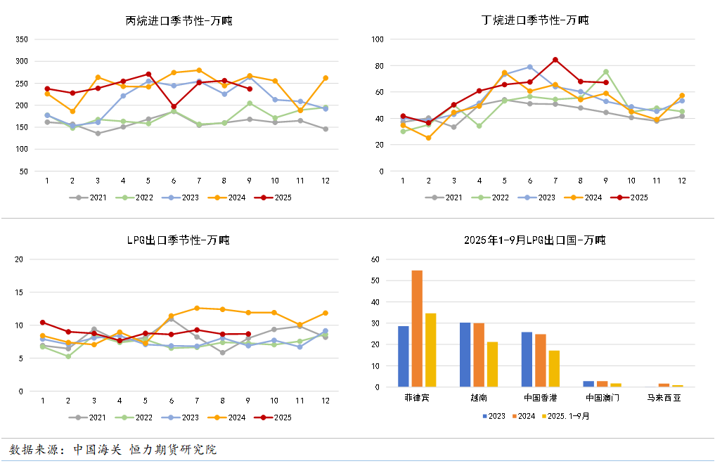 9月LPG进口总量结构性下滑,较8月减少20万吨
