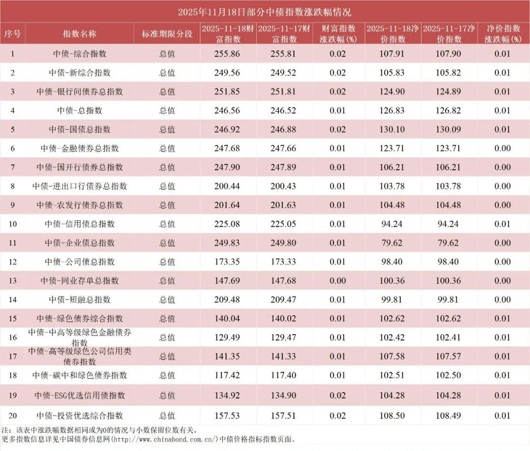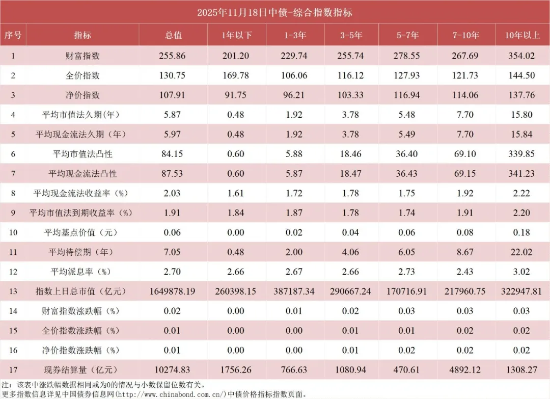 债市值言:中债收益率曲线和指数日评2025年11月18日
