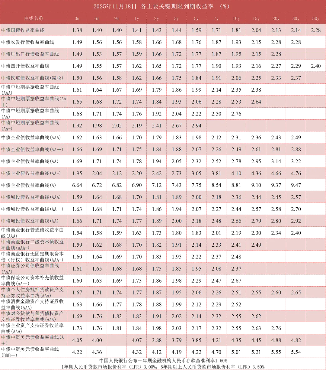 1、中债信用债收益率曲线基于中债市场隐含评级编制。