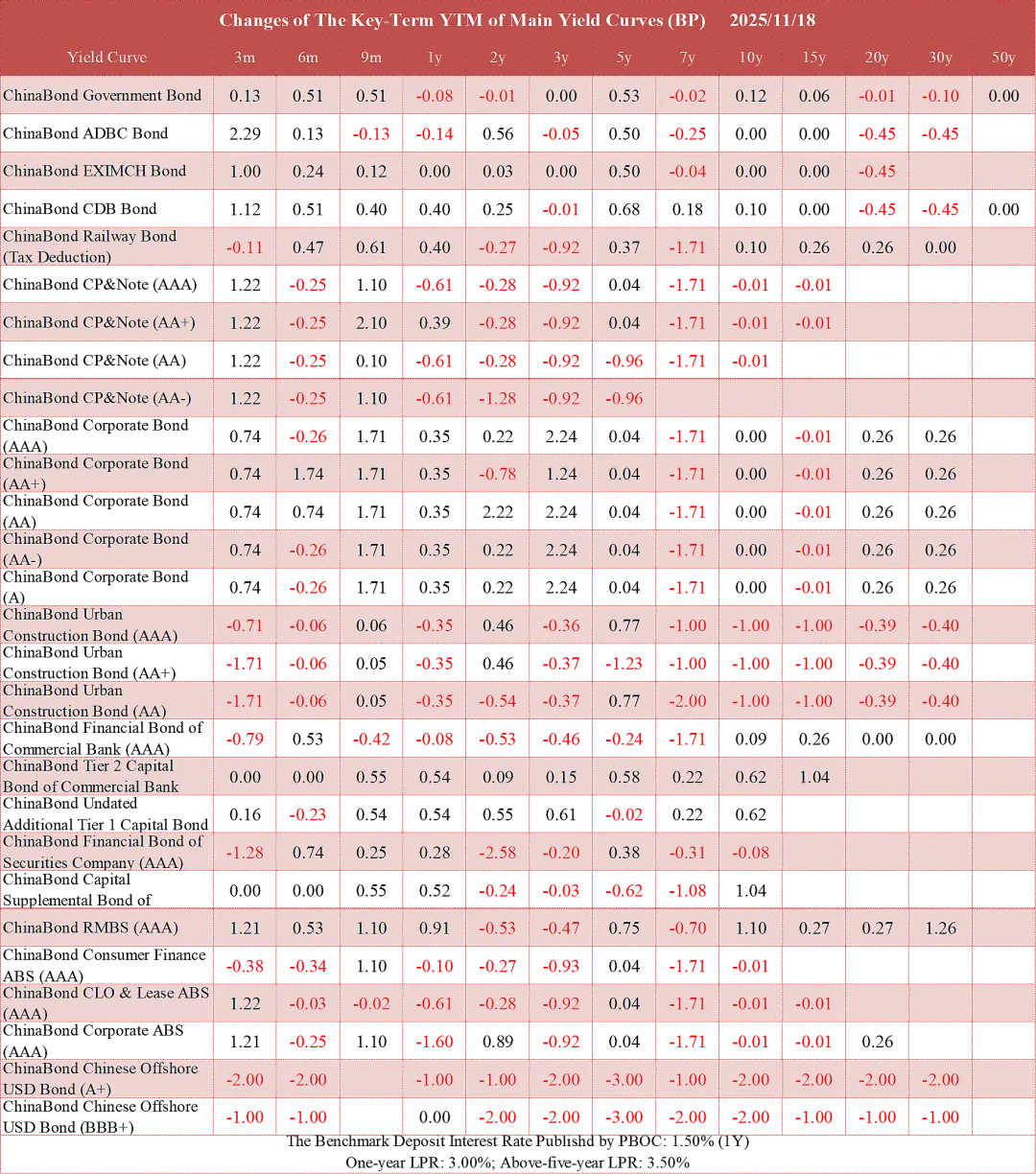 1. The ChinaBond yield curves of corporate bonds are based on ChinaBond Market Implied Rating.