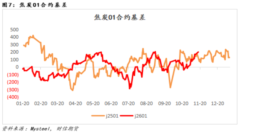 从焦炭基差角度来看,目前焦炭01合约盘面提前反应现货2-3轮提降预期(市场预期焦炭现货有2轮提降),盘面估值较为合理,但盘面企稳需第一轮提降开始落地。