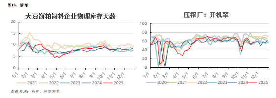 2、利润:因国内大豆及豆粕的供应压力仍大,现货压榨利润不容乐观,但目前26年一季度的油厂榨利水平维持在100-150元/吨的水平,从当下远月买船不足的背景来看,该榨利水平或将延续。