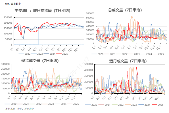 现货成交积极性仍然有限,以刚需补库为主,近期12-3月的远月成交略有起色,下游成交主体为贸易商,一方面是贸易商认为油厂售价的性价比较高,另一方面是下游布局远月较少,存在补库需求,提货方面,终端提货积极性有限,油厂压力仍大,催提现象仍存。