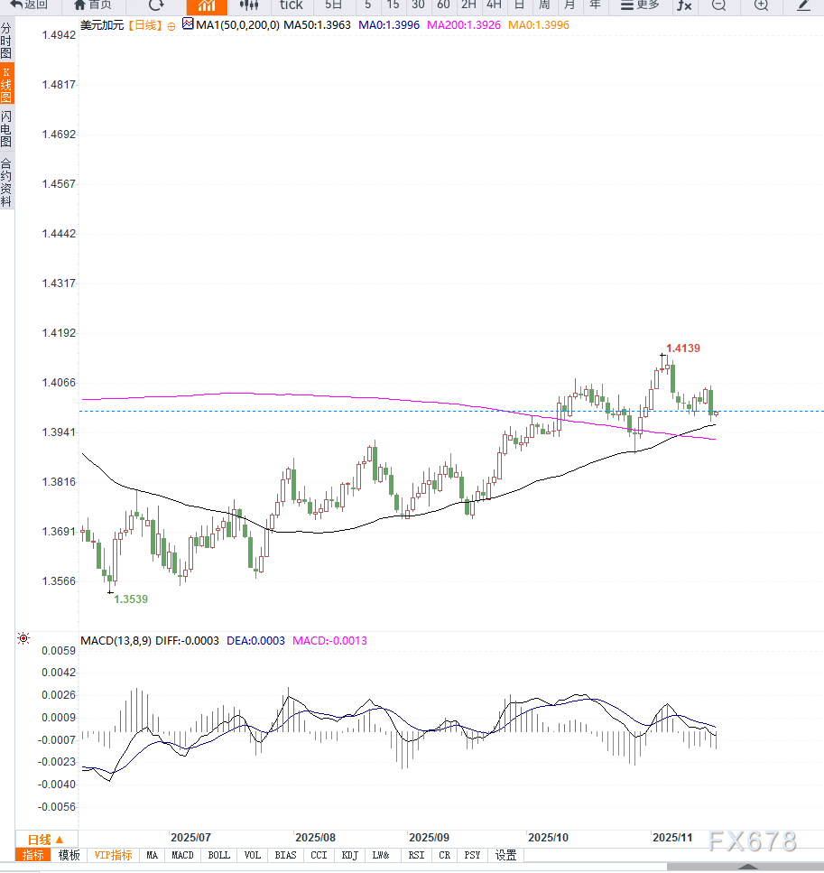 目前USD/CAD的多空力量主要由原油基本面恶化+北美政策差异共同驱动。油价疲弱短期持续压制加元,而加拿大内部通胀韧性为加元提供有限底部支撑,使汇价暂呈“震荡偏强”结构。若美国降息预期继续下调,该货币对的上行空间仍可能被打开。