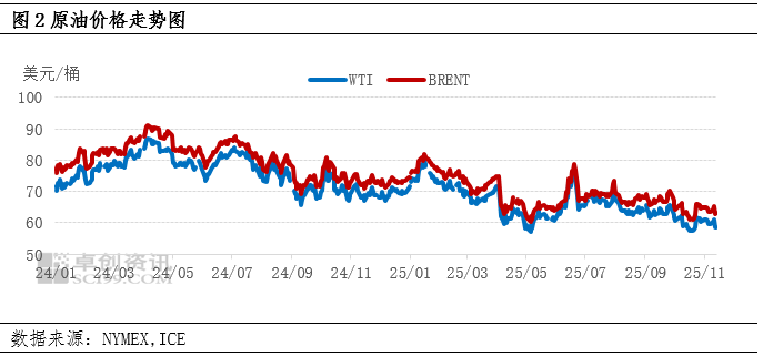 从成本端来看,11月中上旬原油价格整体维持震荡行情。前期虽然中美和谈顺利,但是因为美国原油累库而汽油去库,油价整体维持窄幅波动。随后,随着美国两党的不断谈判,美国政府停摆的现象结束,特别是特朗普向市场释放乐观信息,导致风险偏好回升,美股上涨带动原油价格出现连续小幅上涨,市场悲观情绪不断修复。但是,因为欧佩克月报公布,供应增加和需求弱化同时利空原油市场,市场关注基本面因素,导致原油价格出现方向性下跌,因为短时下跌幅度较大,将前期连续上涨部分全部吞没。截至11月17日,11月中上旬美原油均价59.89美元/桶,较10月同期跌0.67%;布伦特原油均价63.94美元/桶,较11月同期跌0.06%。叠加11月份稀释沥青贴水下降,沥青生产原料成本下滑,地方炼厂沥青生产效益改善,成本端对沥青现货价格支撑不足。