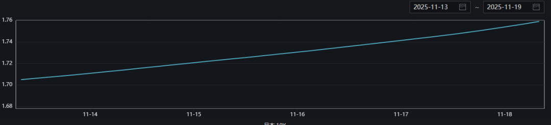 日本10年期国债收益率走势图(11月13日~19日) 国债收益率与国债价格走势相反