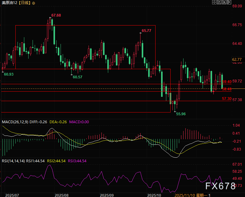 于是压力位是59.75,59.40,支撑位为58.48和下面的57.30。