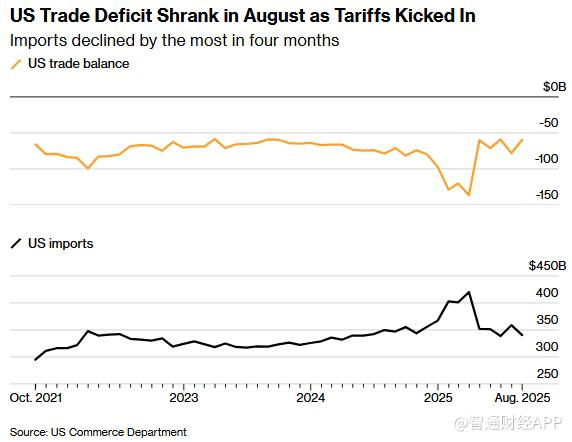 在联邦政府停摆导致数据延迟公布后,美国商务部周三发布的最新数据显示,美国8月贸易逆差显著收窄。随着特朗普总统宣布的一系列全球关税在8月正式生效,美国进口大幅下滑,带动当月贸易缺口缩至数月低位。